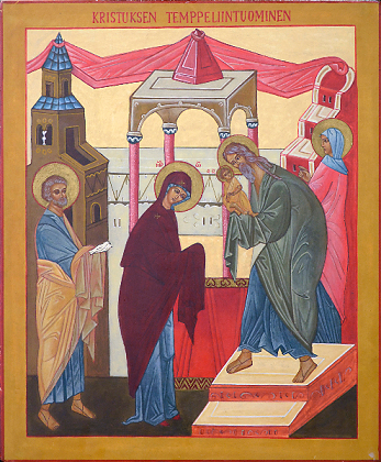 Jo viimeistään 500-luvulta lähtien kristillinen kirkko on viettänyt Kristuksen temppeliintuomisen juhlaa, jossa vanhurskaan Simeonin odotus saa täyttymyksensä Vapahtajassa. Simeon ottaa Jeesus-lapsen syliinsä, jolloin vanha ja uusi liitto kohtaavat. Juhlaa onkin kutsuttu myös nimellä ”Kohtaaminen temppelissä”. Pyhän Hengen johdattamana Simeon tunnistaa lapsen odotetuksi Messiaaksi, maailman Vapahtajaksi, ja lausuu tunnetut sanat: ”Herra, nyt sinä annat palvelijasi rauhassa lähteä, niin kuin olet luvannut. Minun silmäni ovat nähneet Sinun pelastuksesi, jonka olet kaikille kansoille valmistanut: valon, joka loistaa pakanakansoille, kirkkauden, joka loistaa kansallesi Israelille!” Iäkkäälle Simeonille oli nimittäin sanottu, ettei tämä tapaa kuolemaa ennen kuin näkee Herran Voidellun. Samalla Simeonin suulla todistetaan se, että evankeliumi on tarkoitettu kaikille kansoille.